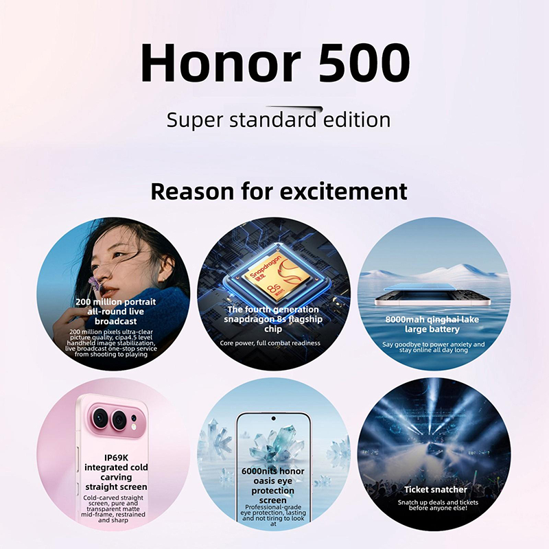 Honor 500 5G Dual Sim Full Active DSFA Android 16 Snapdragon 8s Gen 4 50.0MP + Dual Camera 6.55 inch AMOLED