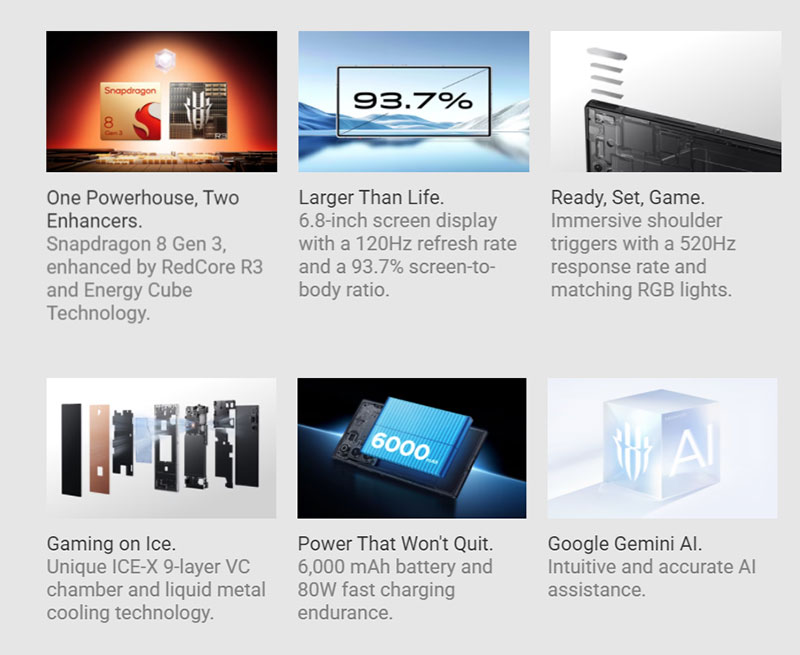 Nubia Redmagic 10 Air Global Version Dual Sim 5G Android 15 Snapdragon 8 Gen 3 16.0MP + Dual Camera 6.8 inch AMOLED