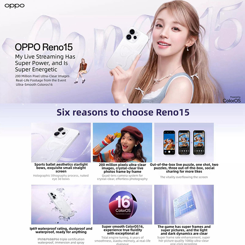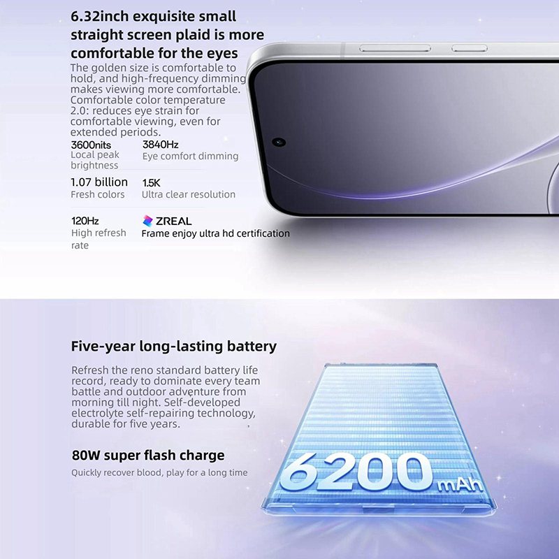 OPPO Reno 15 5G Dual Sim Android 15 Dimensity 8450 50.0MP + Tri-Lens Camera 6.32 inch AMOLED