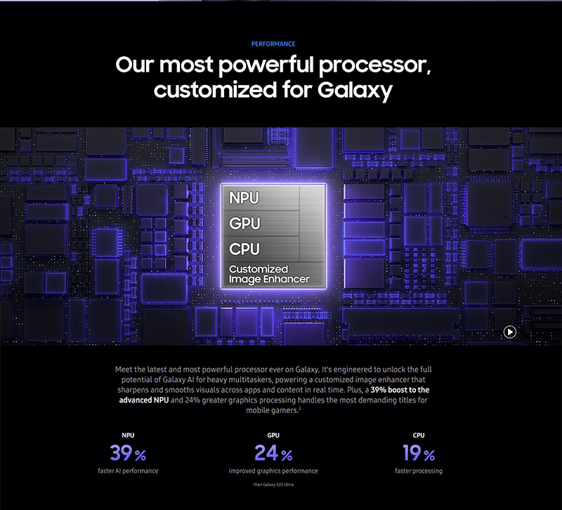 The Qualcomm Snapdragon Elite 8 processor is Galaxy’s fastest ever on our AI phones, giving you super-slick gaming and multitasking.