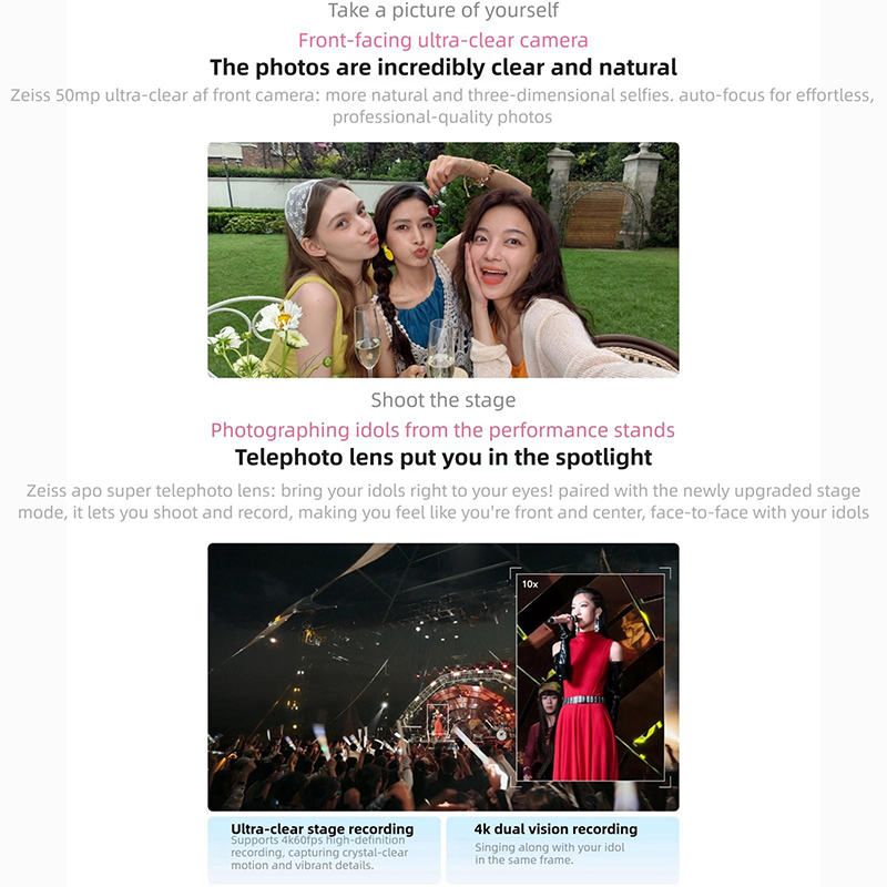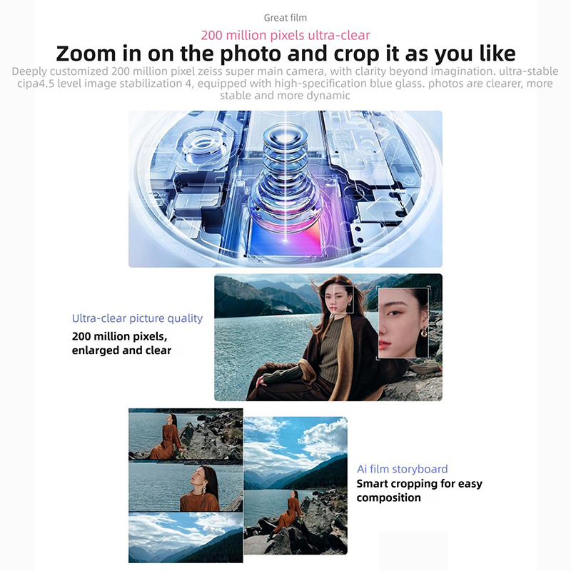 | Rear Camera | 200.0 mega pixel, 50.0 mega pixel, 50.0 mega pixel, Auto Focus, Flash Light , Tri-lens Camera, Zeiss 200 million APO super telephoto |