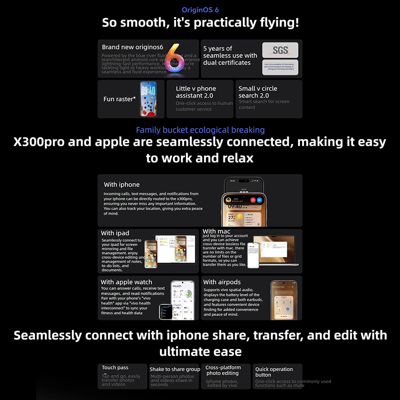 Vivo X300 Pro Global Version 5G Dual Sim Android 16 Dimensity 9500 50.0MP + Tri-Lens Camera Zeiss 200 million 6.78 inch AMOLED