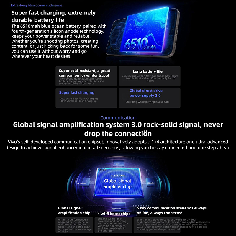 | Mobile internet | WiFi, WiFi7, EDGE, GPRS, UMTS, HSPA, HSPA+, FDD LTE, TDD-LTE, 5G |
