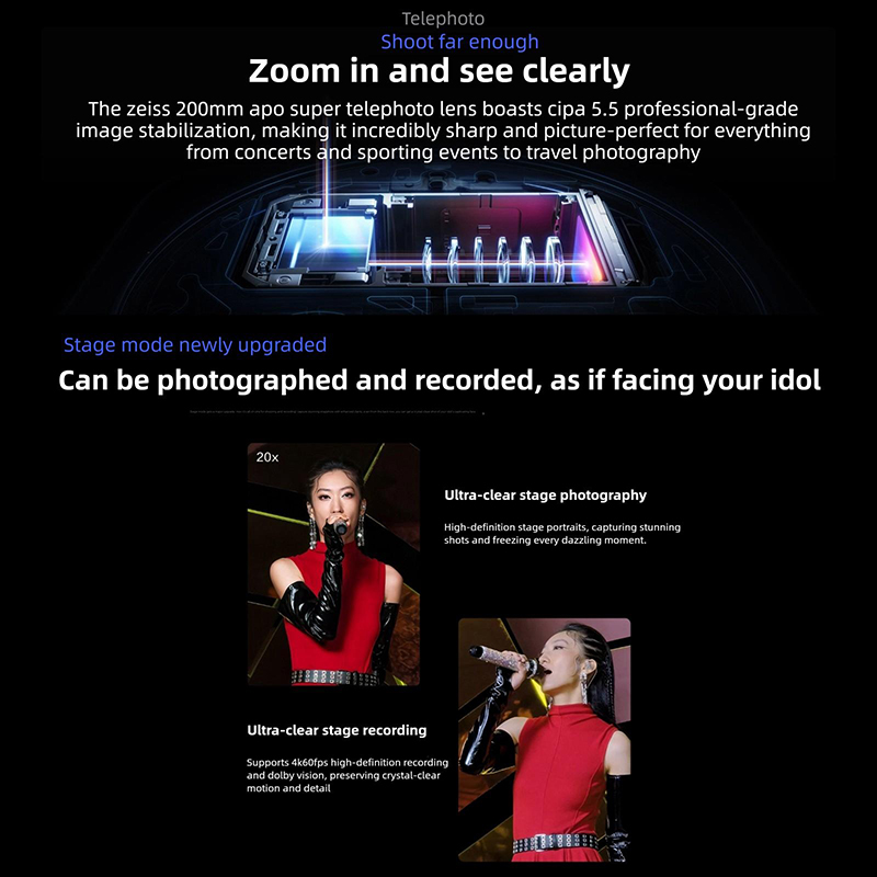 | Rear Camera | 200.0 mega pixel, 50.0 mega pixel, 50.0 mega pixel, Auto Focus, Flash Light , Tri-lens Camera, 3Zeiss 200 million APO super telephoto |