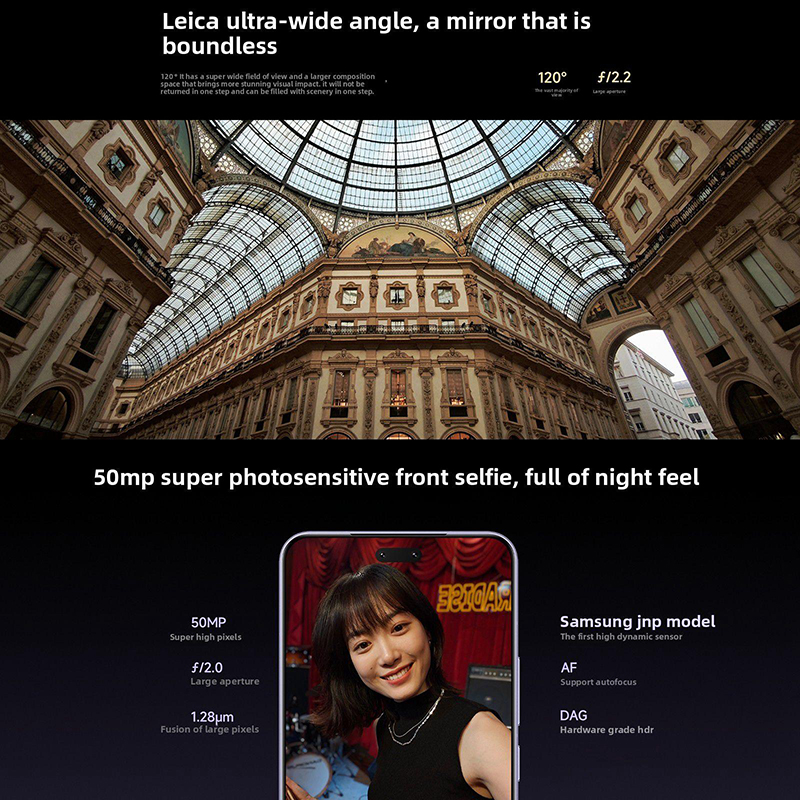 | Rear Camera | 50.0 mega pixel, 50.0 mega pixel, 12.0 mega pixel, Auto Focus, Flash Light, Tri-lens Camera |